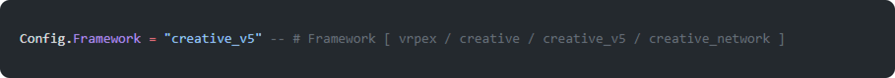config/config.luava ate e procure a configuracao na imagem e altere para a suaFrameworkcaso a sua base nao correponder comvrpex / creative / creative_v5 / creative_networkvode pode abrir um ticket no discord.